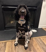 Hi, my name is Gunnar Henderson, the Doodle. I want to tell you about the benefits of pet therapy for me and my therapy friends. From the K9 perspective, I get a lot of belly and back rubs. Sometimes I get kisses and am told what a good boy I am or how super cute I am. People often ask what kind of dog I am, and we discuss the pets in their lives or experiences with dogs or other pets.